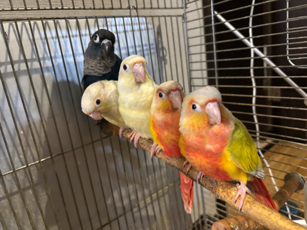 オカメインコ、ウロコインコ、オキナインコ、シロハラインコです。