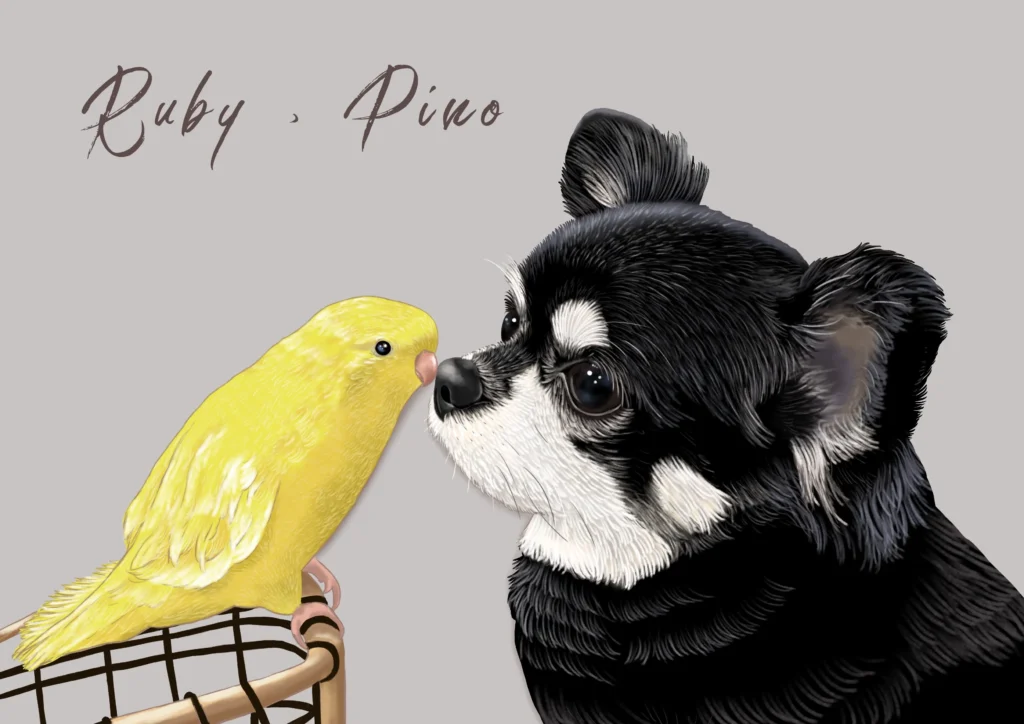 お写真データをもとにうちのこ似顔絵を受注製作致します。製作過程をお客様と共有させて頂くので、安心してご注文頂けます。大切なパートナーを似顔絵に残すことで、ご家族の思い出がまた1つ増えたら嬉しいです。